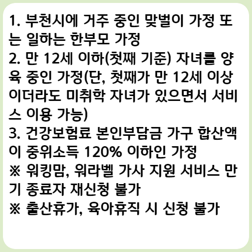 1. 부천시에 거주 중인 맞벌이 가정 또는 일하는 한부모 가정